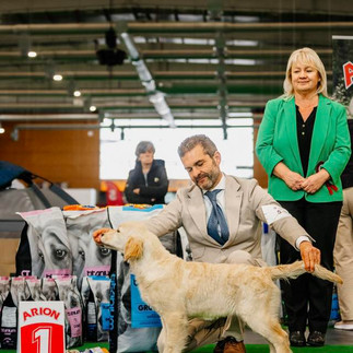 En la exposición internacional (all-breed), Chester consiguió dos 𝐁𝐞𝐬𝐭 𝐨𝐟 𝐆𝐫𝐨𝐮𝐩 consecutivos, alcanzando sus grupos #22 y #23.